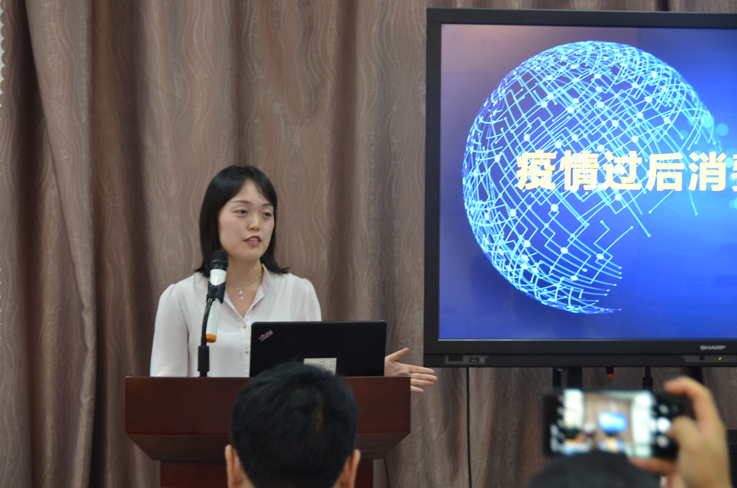 之后,程群同志通過數(shù)據(jù)分析出大家對消費市場是降中有升的跡象,第三部分分享了消費行業(yè)如何渡過難關(guān)這一話題,從企業(yè),政府兩個方面分析提出:企業(yè)應(yīng)開源節(jié)流,政府應(yīng)刺激消費,網(wǎng)紅經(jīng)濟、實體經(jīng)濟、宅經(jīng)濟等新現(xiàn)象成為現(xiàn)代經(jīng)濟的主要發(fā)展方向,并分析國外和中國的市場環(huán)境。