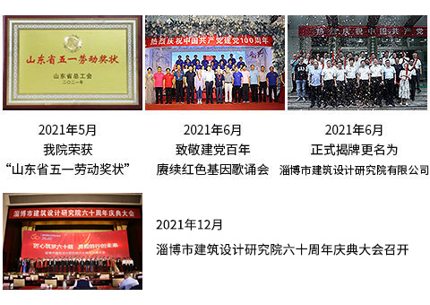 | 1月,我院被表彰為淄博市脫貧攻堅(jiān)專項(xiàng)獎(jiǎng)勵(lì)嘉獎(jiǎng)集體 2月,我院被淄博市委、市政府通報(bào)表揚(yáng)為2020年全市突出貢獻(xiàn)企業(yè) 5月,我院榮獲“山東省五一勞動(dòng)獎(jiǎng)狀” 6月,我院黨委組織“致敬建黨百年,賡續(xù)紅色基因”歌誦會(huì)等系列活動(dòng),隆重慶祝中國共產(chǎn)黨成立100周年 6月,淄博市建筑設(shè)計(jì)研究院正式揭牌更名為淄博市建筑設(shè)計(jì)研究院有限公司 12月,淄博市建筑設(shè)計(jì)研究院六十周年慶典大會(huì)召開 |